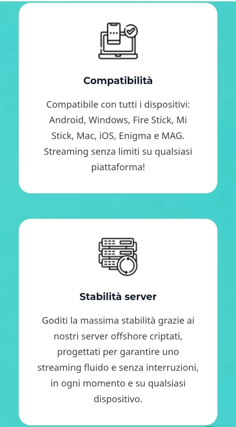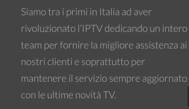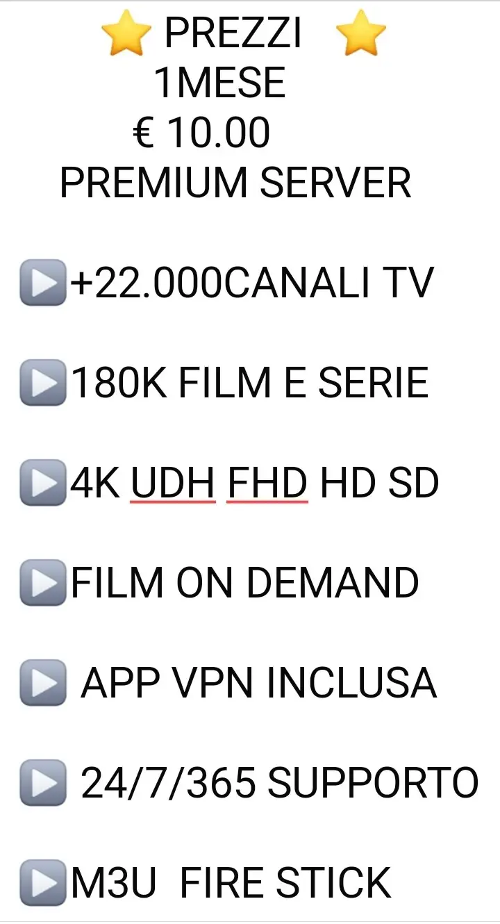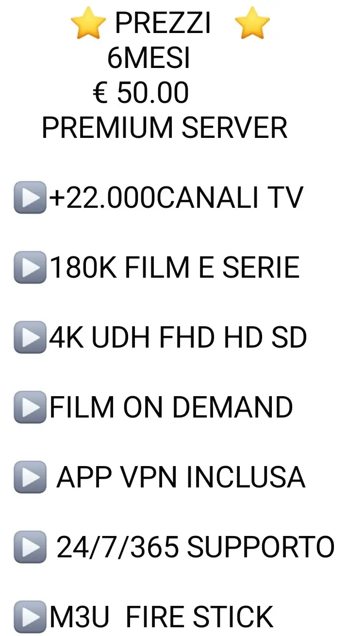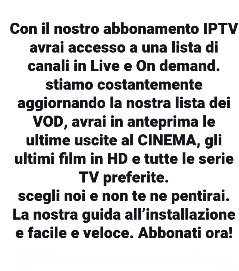 Per iniziare a utilizzare in nostro servizio di Iptv in Italia, o all'estero basta acquistare uno dei nostri abbonamenti Iptv configurare il tuo dispositivo preferito e iniziare a guardare I tuoi contenuti streaming.